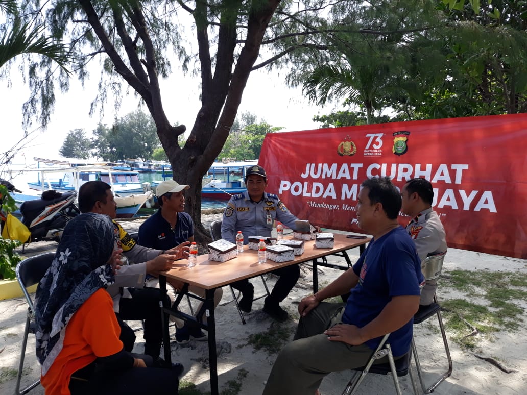 Kegiatan Jumat Curhat dilaksanakan di pinggir pantai dermaga Pulau Harapan dan dihadiri oleh nelayan yang singgah.