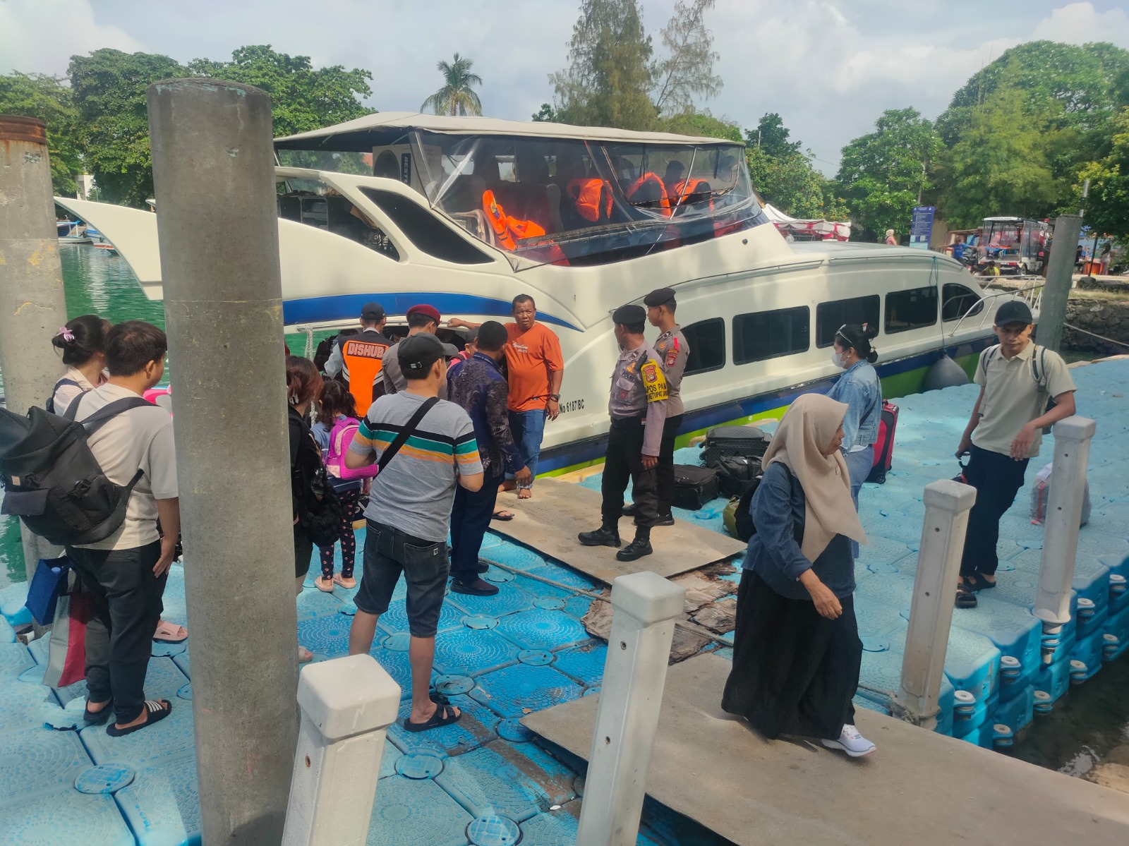 “Kami siagakan personel untuk memberikan pertolongan pertama kepada penumpang yang membutuhkan, terutama mereka yang mengalami gangguan kesehatan saat perjalanan laut. Kami juga menyediakan layanan informasi pariwisata bagi wisatawan yang datang ke wilayah Kepulauan Seribu Selatan,” ujar AKP Sanyata Harsono.