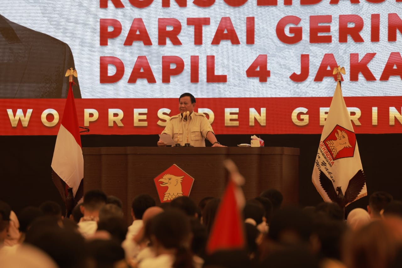“Kebetulan, Sekjen kita saudara Ahmad Muzani kemarin berulang tahun. Ulang tahun beliau adalah yang ke-55. Beliau sekarang berada di Lapangan Banteng, sedang memimpin diklat di situ.” kata Prabowo ke Muzani.