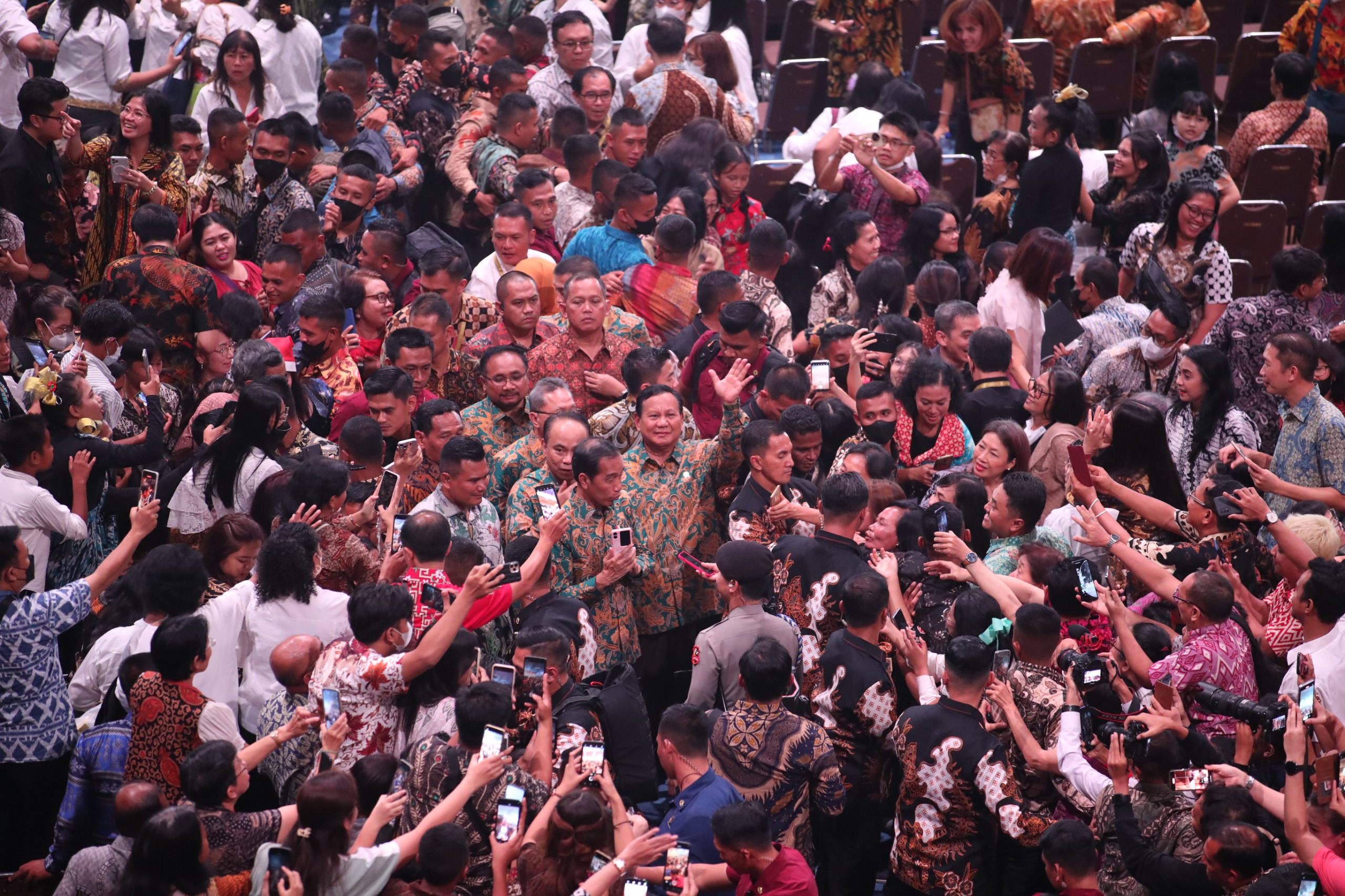 Selama berlangsungnya acara, Prabowo duduk sederet dengan Presiden Jokowi; Menteri Komunikasi dan Informasi (Menkominfo) Budi Arie Setiadi; Menteri Agama (Menag) Yaqut Cholil Qoumas; dan Wakil Menteri Pariwisata dan Ekonomi Kreatif (Wamenparekraf) Angela Tanoesoedibjo.