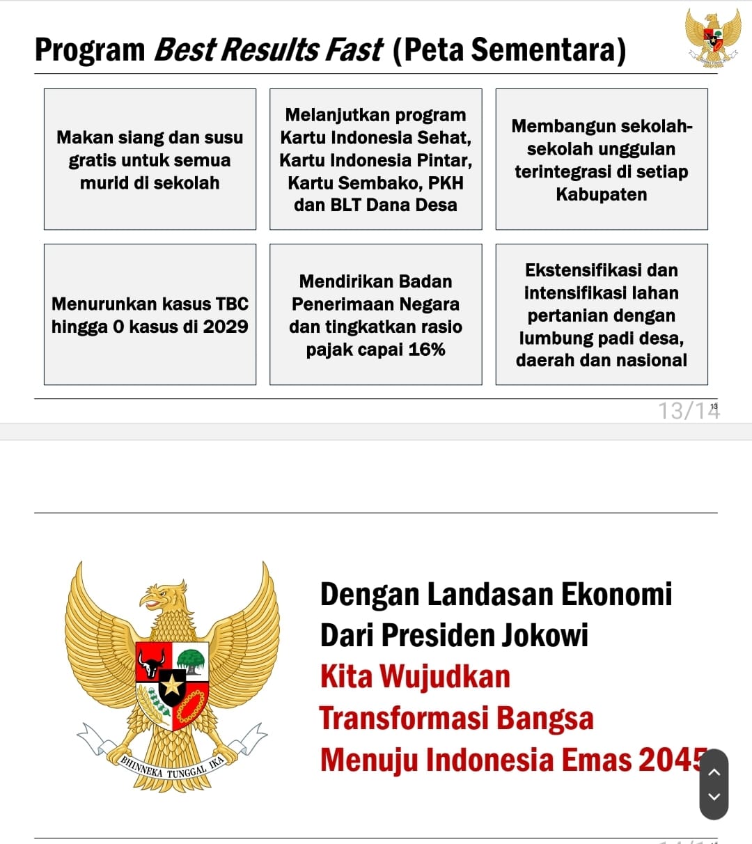 “Jokowinomics adalah aplikasi nyata dari ekonomi Pancasila yang bisa kita gunakan untuk mencapai Indonesia Emas 2045,” kata Prabowo.