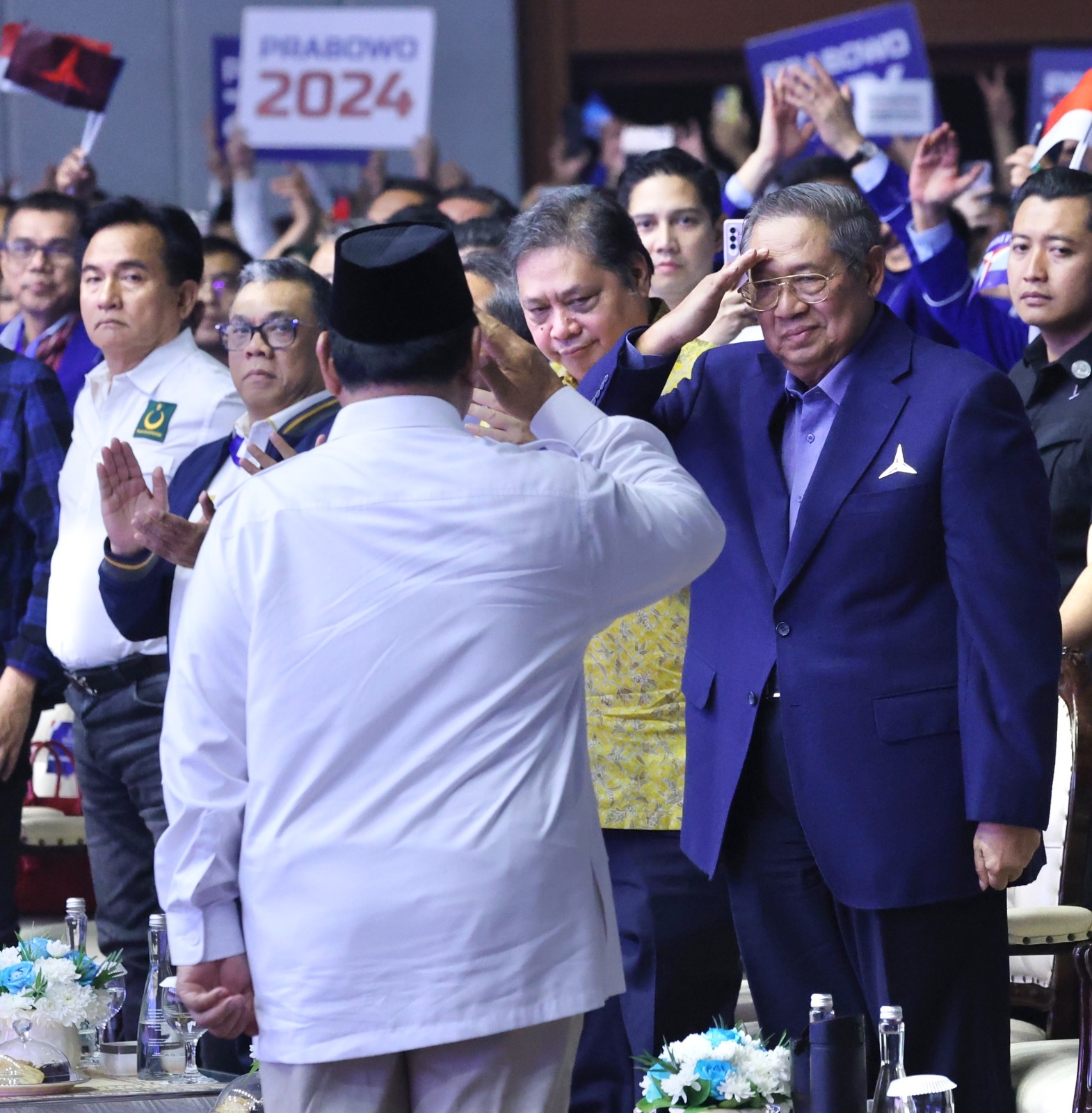 Sejumlah ketua umum partai koalisi juga hadir dalam Rapimnas tersebut di antaranya Ketua Umum Partai Golkar Airlangga Hartarto, Ketua Umum Partai PAN Zulkifli Hasan, Ketua Umum Partai Gelora Anis Matta, Ketua Umum PBB Yusril Ihza Mahendra, Sekjen PSI Isyana Bagoes Oka. (ris)