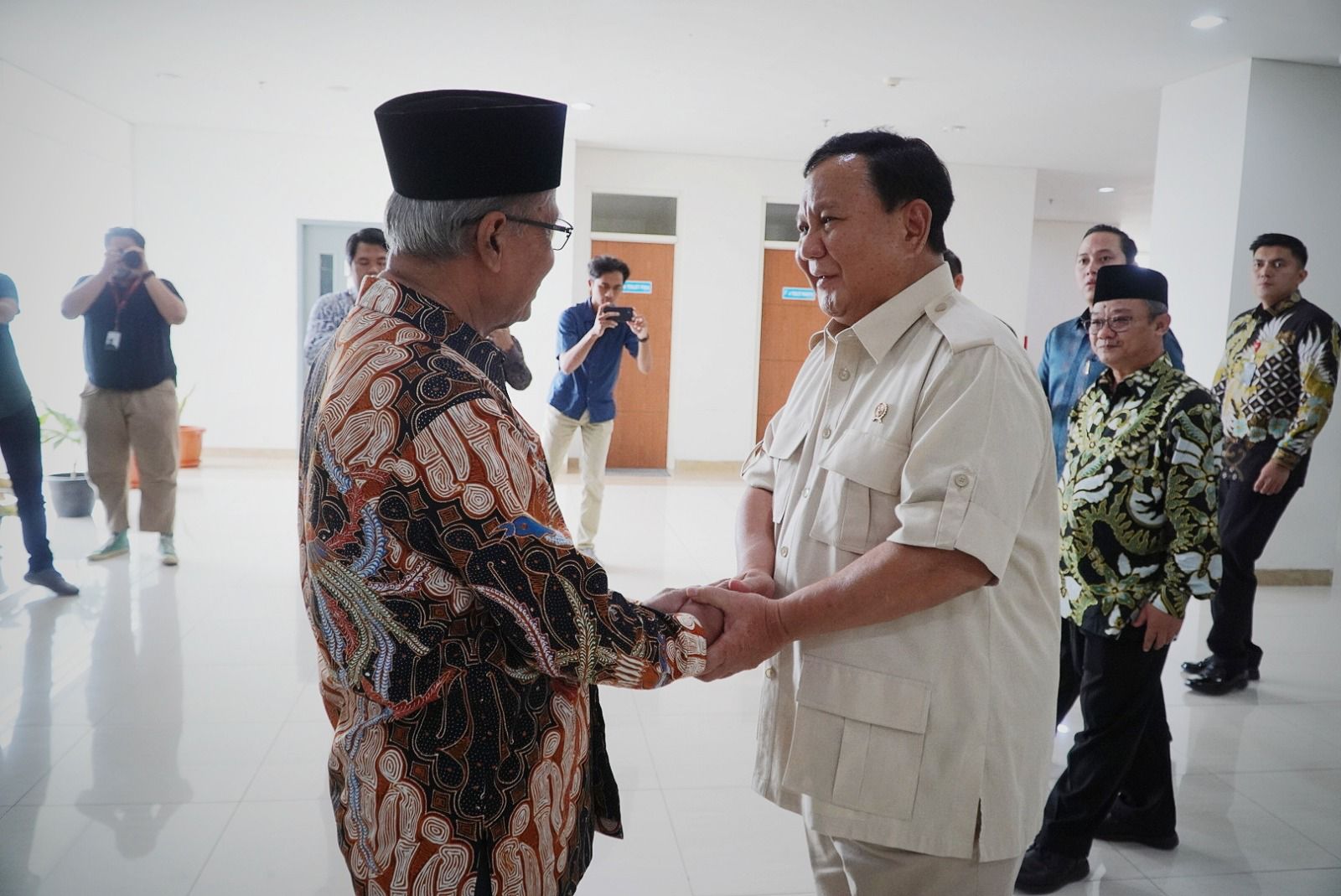 Kehadiran Prabowo yang mengenakan baju safari disambut langsung oleh Haedar Nashir. Dalam pertemuan yang berlangsung dua jam tersebut, keduanya membincang berbagai hal, termasuk kerja sama bidang pertahanan.