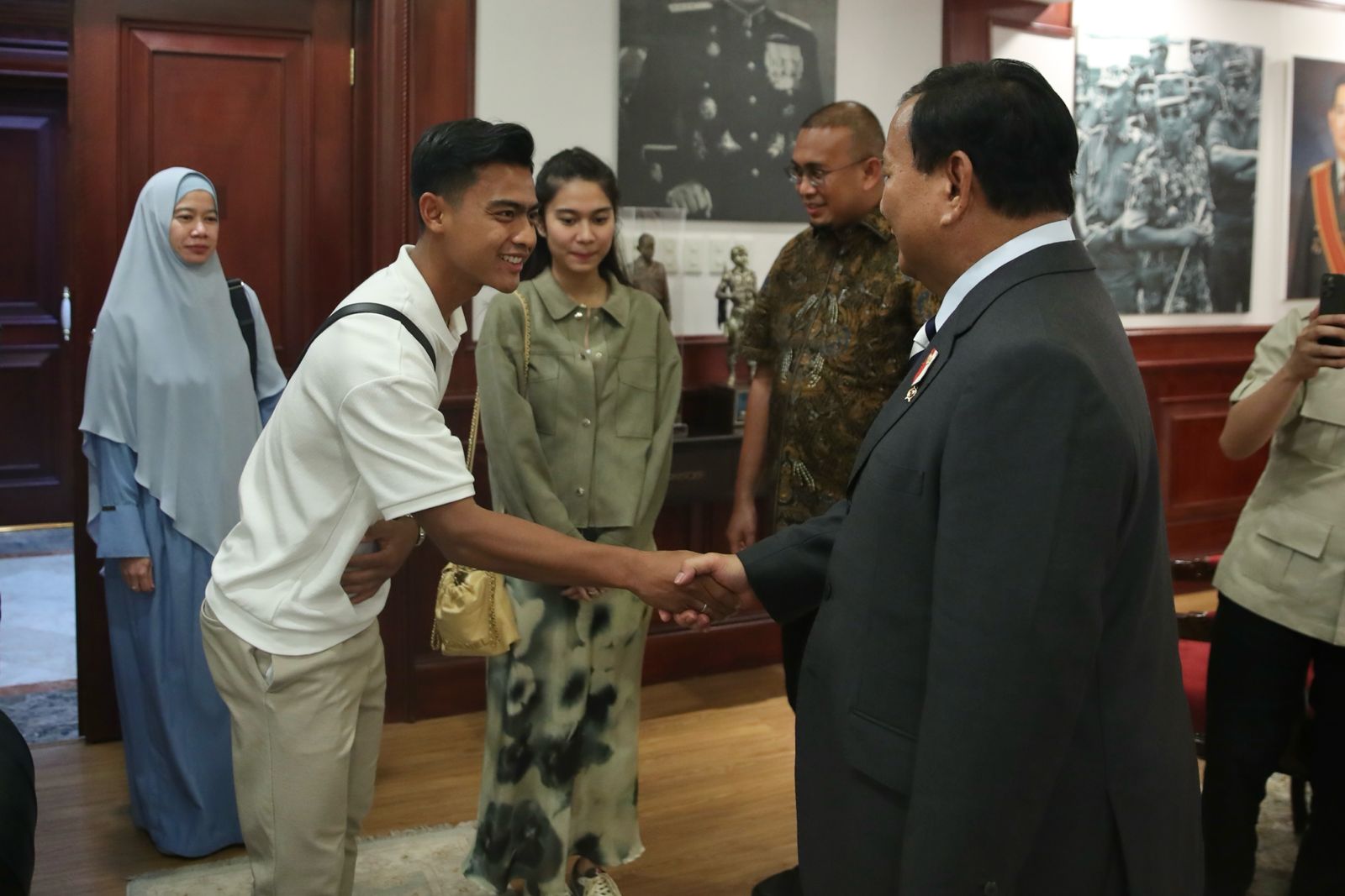 Arhan datang ke kantor Kemhan menemui Prabowo didampingi oleh istrinya Azizah yang merupakan putri politikus Partai Gerindra Andre Rosiade.
