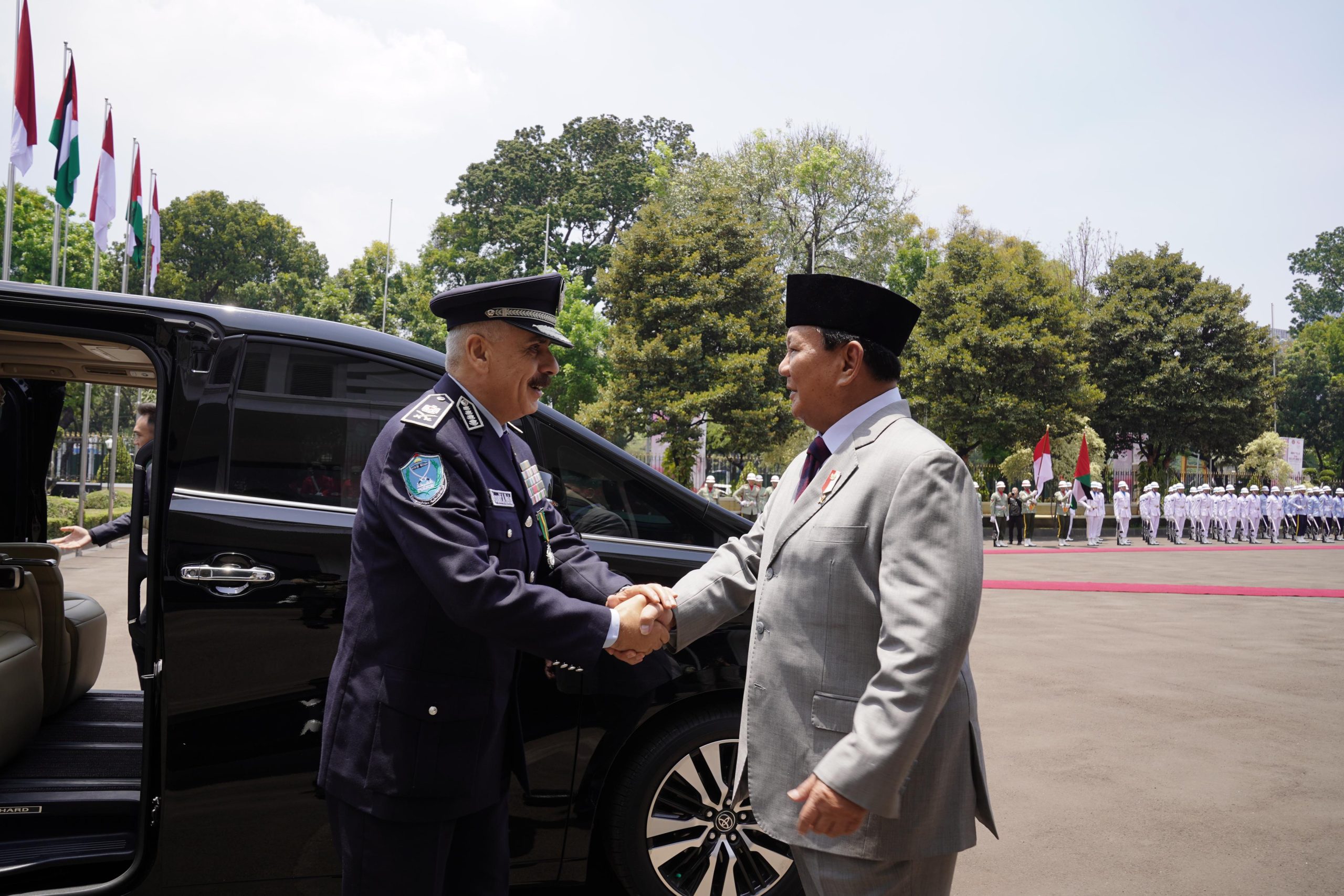 Prabowo menyambut secara langsung kehadiran dari Jenderal Yousef dengan salam hormat dan salam.