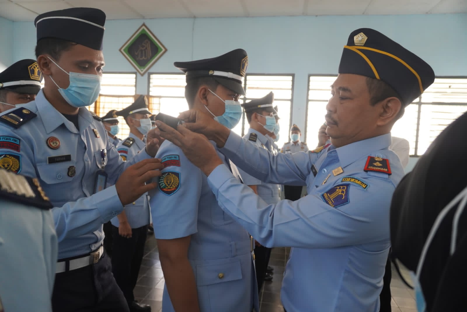 Penyematan tanda kenaikan pangkat reguler ini dipimpin langsung oleh Kepala Rutan Pemalang, Ary Nirwanto.