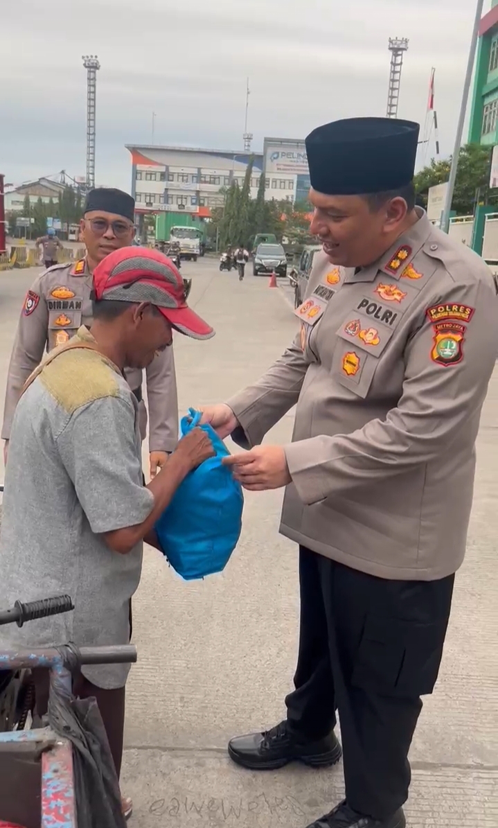 KS, JAKARTA – Dalam rangka semangat berbagi di bulan suci Ramadhan penuh berkah dan ampunan, Kapolres Pelabuhan Tanjung Priok, AKBP Dr. Martuasah H. Tobing, S.I.K., M.H., bersama jajarannya membagikan Sembako kepada para pengguna jalan di Pelabuhan Tanjung Priok. Kegiatan ini merupakan bentuk kepedulian Polres Pelabuhan Tanjung Priok terhadap masyarakat yang masih dalam perjalanan saat waktu berbuka puasa tiba, Jumat sore.