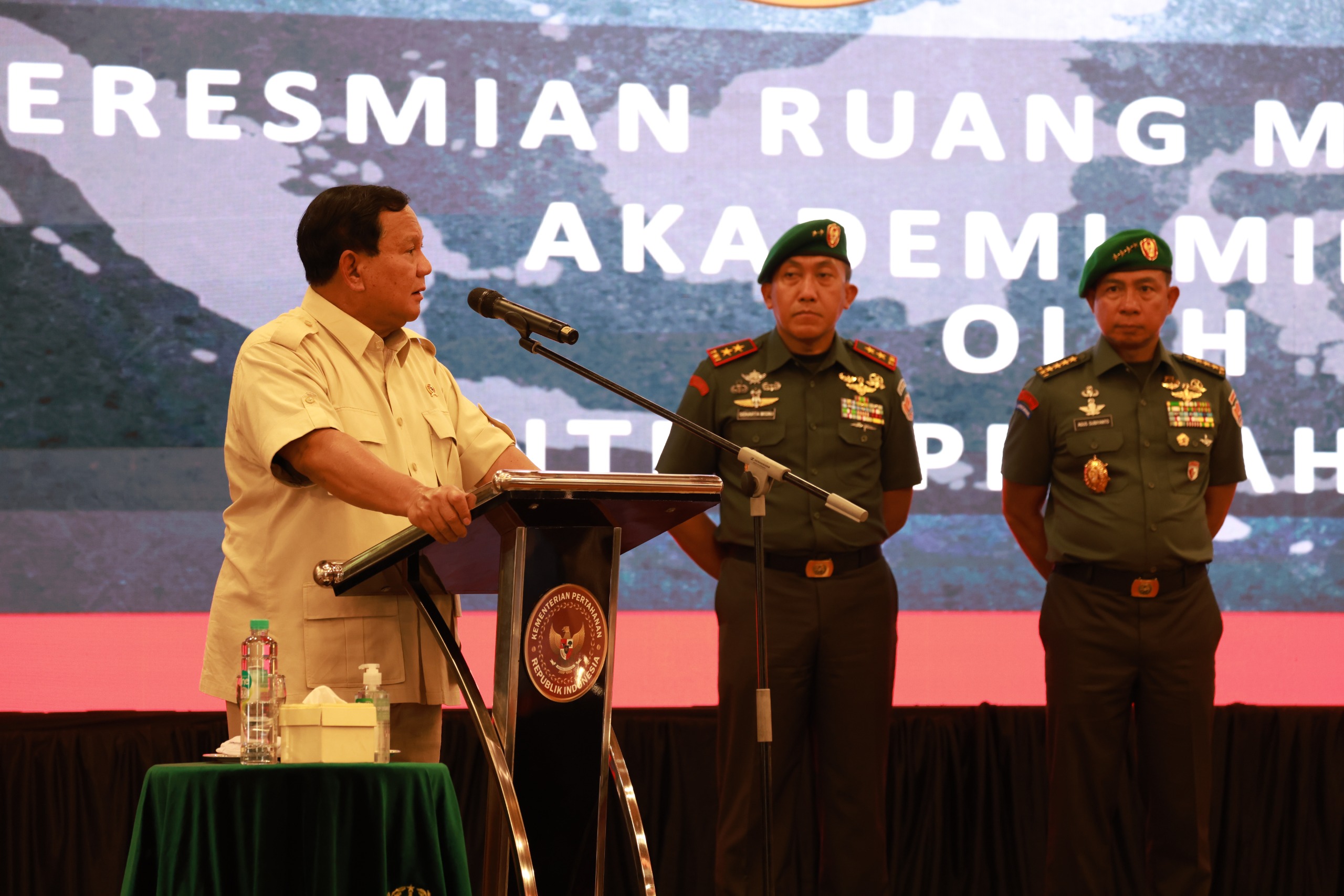 KS, MAGELANG – Menteri Pertahanan RI, Prabowo Subianto meresmikan pembangunan ruang makan Taruna Husein di Akademi Militer (Akmil), Magelang, Kamis, (9/11/2023). Menurut Prabowo ruang makan ini memiliki nilai penting karena dalam tiga hari sekali berkumpul para taruna muda para calon-calon perwira pemimpin, calon pembawa bendera kehormaran bangsa dan negara.