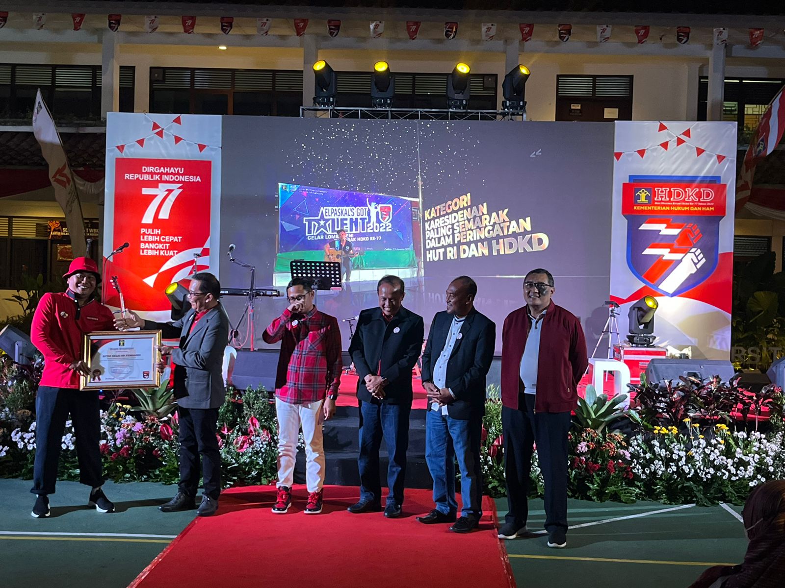 Pada acara Malam Syukuran dan Anugerah yang dihadiri oleh para Kepala Unit Pelaksana Teknis Kemenkumham se-Jawa Tengah tersebut, Kanwil Kemenkumham Jawa Tengah juga memberikan medali dan tropi kepada para pemenang pertandingan olahraga yang digelar dalam satu rangkaian kegiatan peringatan HDKD ke-77.