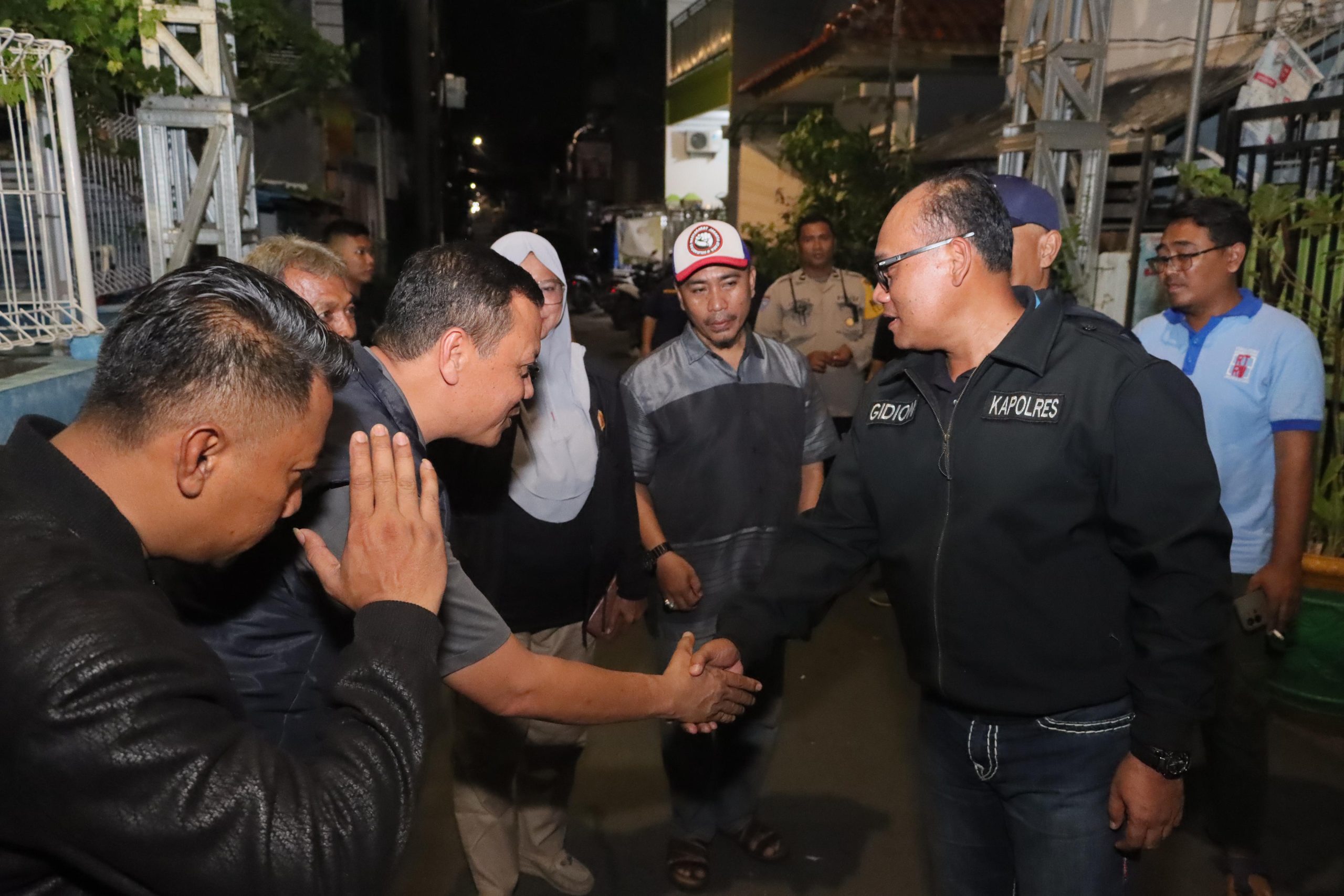 KS, JAKARTA – Kapolres Metro Jakarta Utara Kombes Pol Gidion Arif Setyawan menyambangi Pos Satkamling (Satuan Keamanan Lingkungan) di RW 07, Rawa Badak Utara, Koja, Kamis (6/6) malam.