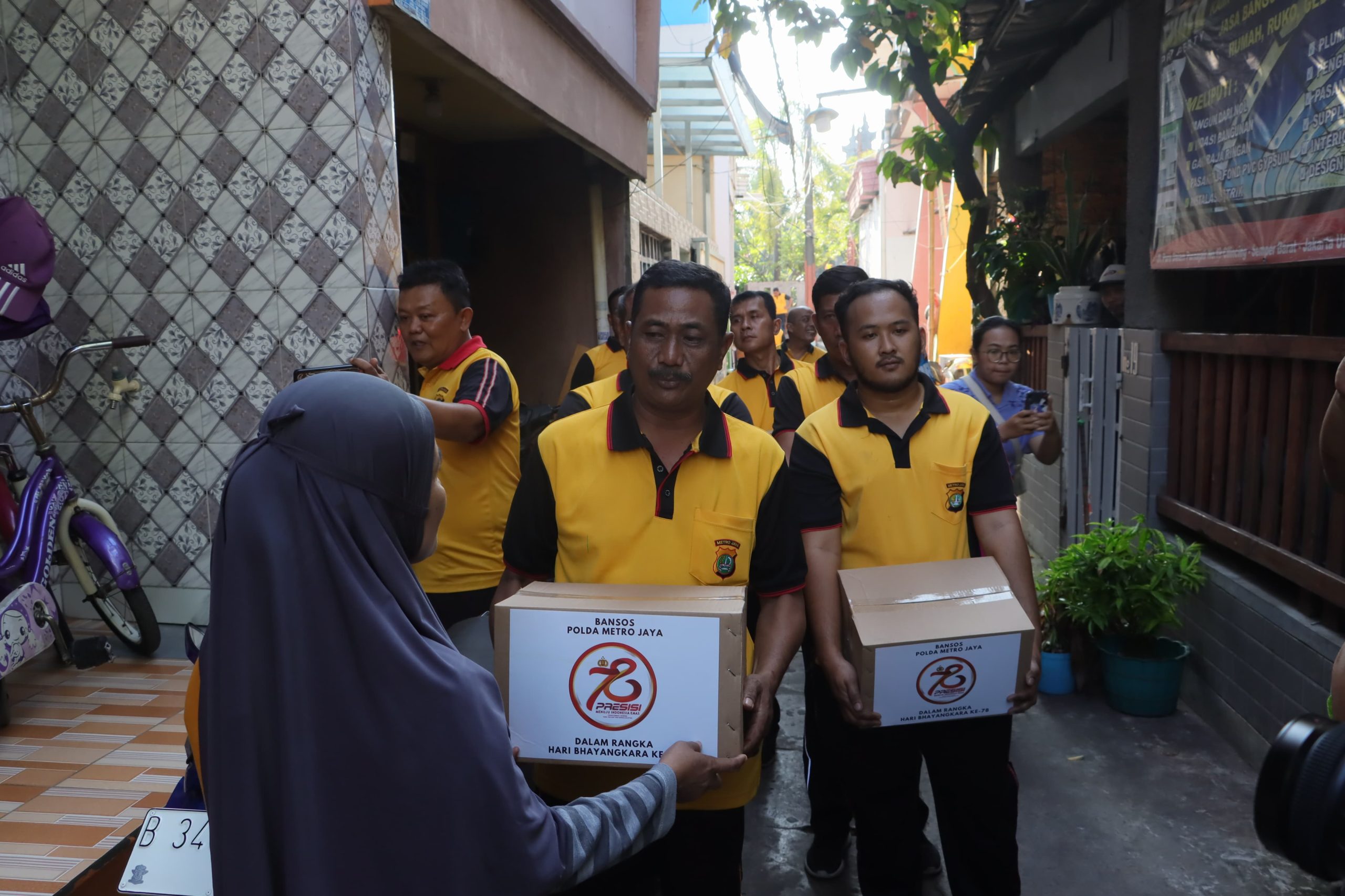 Sambut HUT Bhayangkara ke-78, Polres Jakut Bagikan Sembako ke Warga Semper Barat