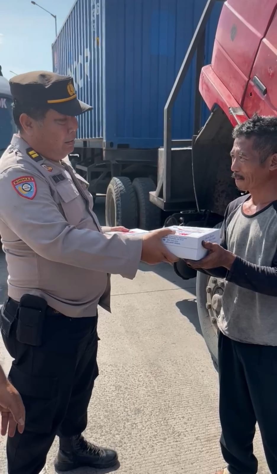 “Berbagi Kebahagian dilaksanakan pada hari Minggu tanggal 2 Maret 2025, Satbinmas membagikan 100 Bok Nasi Padang. Ini dibagikan kepada para Sopir, Petugas Kebersihan, Ojeg, Buruh dan Pekerja yang sedang masuk untuk bekerja di Jalan Raya Padamarang Pelabuhan Tanjung Priok,” jelas AKP Sudirman Agus, S.H., M.H., Senin (3/3/2025).