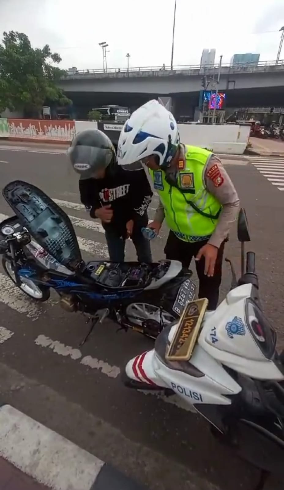 Aksi baik ini terlihat ketika Kanit Turjawali Sat Lantas Polres Metro Jakarta Barat, AKP Karta, dan Aiptu Firdaus tengah melakukan pengaturan lalu lintas.