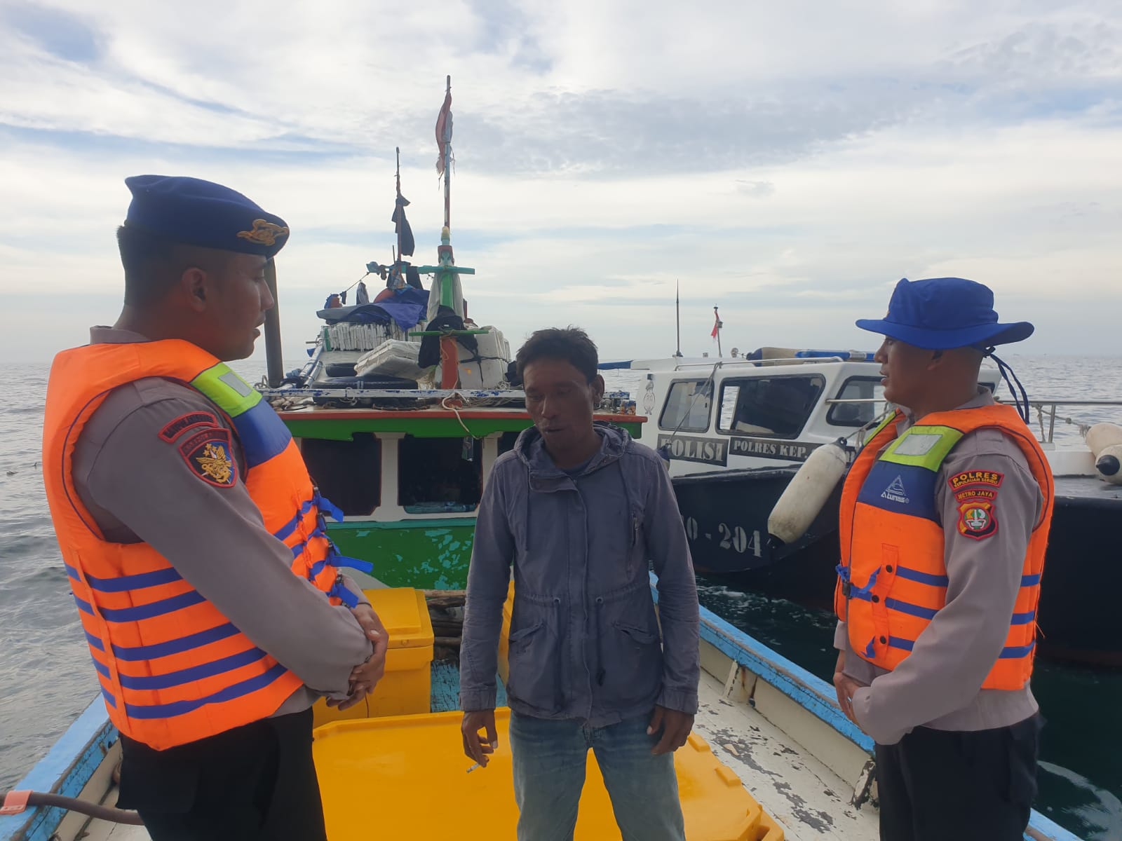 KS, JAKARTA – Selasa (25/02/2025) Satpolairud Polres Kepulauan Seribu terus berupaya menjaga keamanan dan keselamatan di wilayah perairan dengan melaksanakan patroli laut. Dalam kegiatan patroli ini, petugas memberikan himbauan kepada para nelayan agar selalu menggunakan life jacket dan menyediakan Alat Pemadam Api Ringan (APAR) sebagai langkah antisipasi menghadapi cuaca buruk yang tidak menentu.