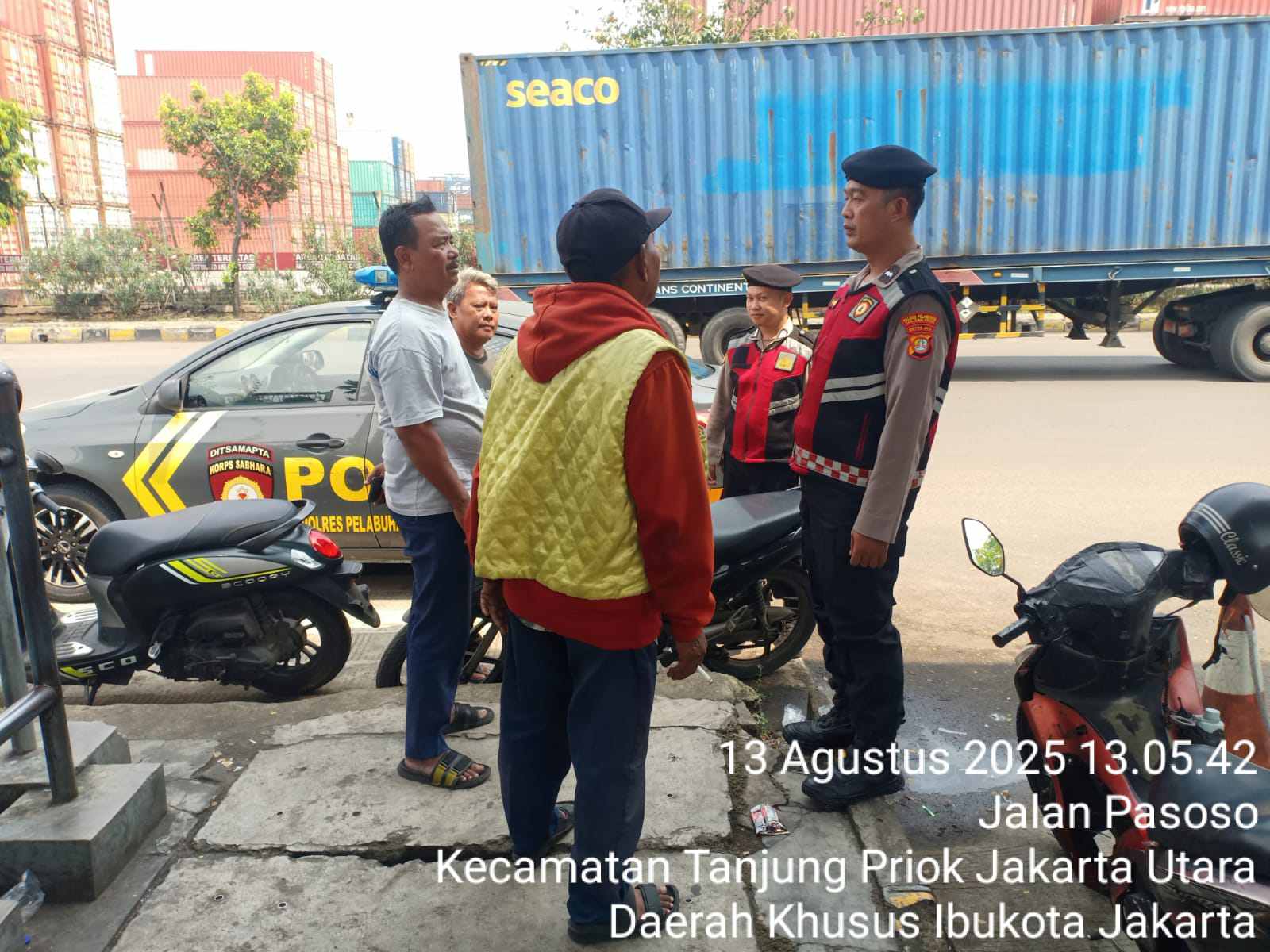 KS,JAKARTA, 13 Agustus 2025 – Dalam rangka menjaga keamanan dan ketertiban masyarakat di wilayah hukum Polres Pelabuhan Tanjung Priok, jajaran Satsamapta melaksanakan kegiatan Patroli Dialogis pada hari Rabu, 13 Agustus 2025, pukul 11.45 WIB hingga 14.00 WIB.