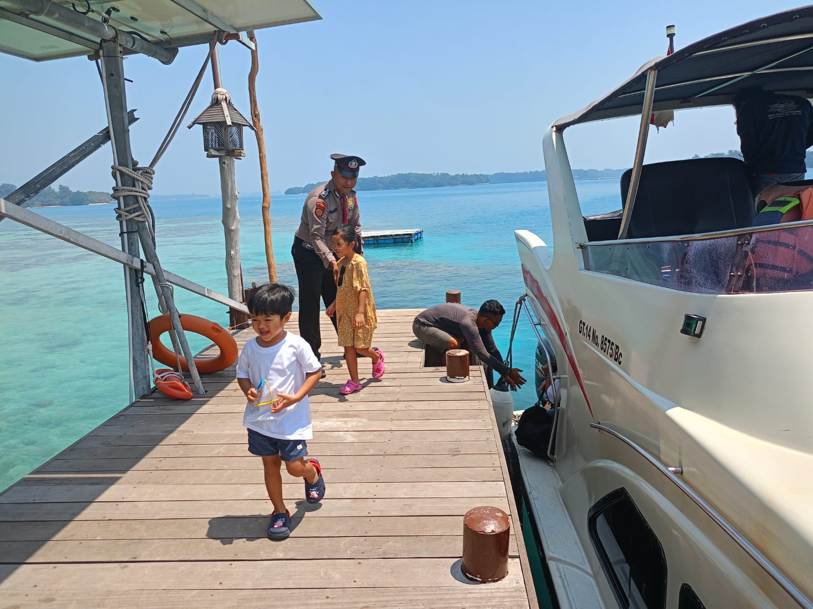 KS, JAKARTA – Satuan Pengamanan Objek Vital (Sat Pam Obvit) Polres Kepulauan Seribu menggelar pelayanan humanis khusus bagi para wisatawan yang berkunjung ke pulau-pulau wisata di wilayah hukum Polres Kepulauan Seribu. Kegiatan ini dilaksanakan pada Selasa (03/10/2023) dengan tujuan memberikan himbauan kamtibmas, memberikan himbauan keselamatan diri dan barang bawaan, serta memberikan informasi wisata kepada para pengunjung.