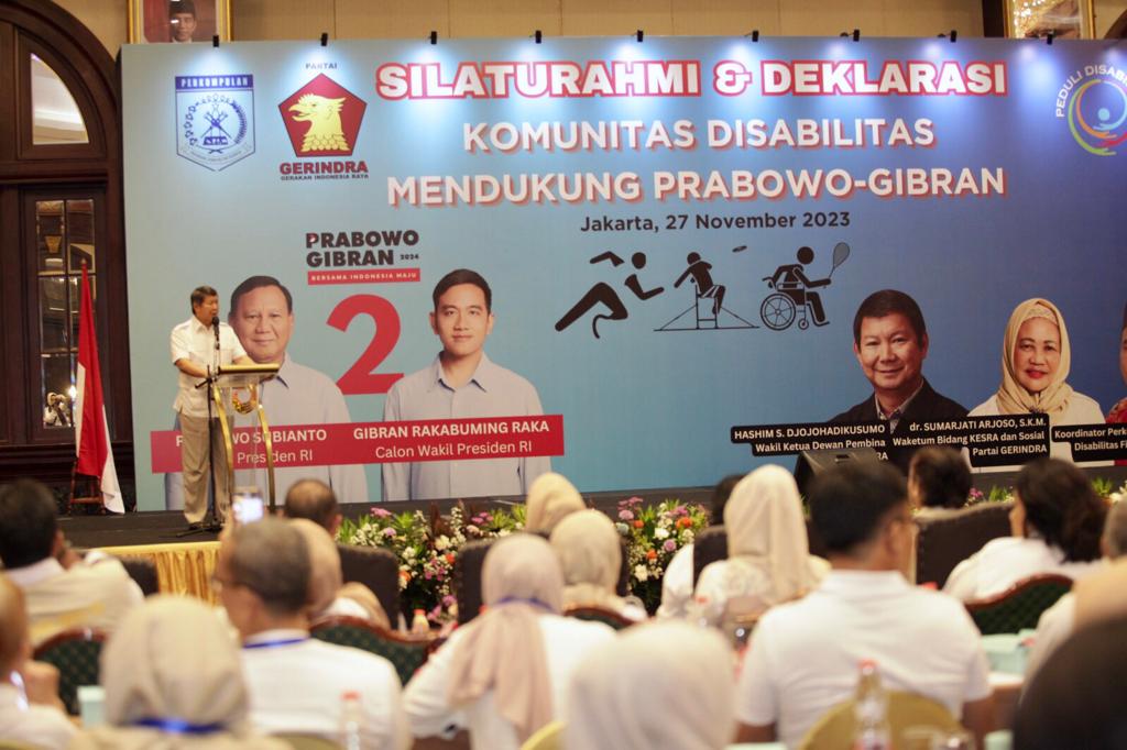 Sementara Wakil Ketua Dewan Pembina Partai Gerindra, Hashim S. Djojohadikusumo menyambut baik ajakan para Komunitas Disabilitas atas deklarasi mendukung Prabowo Gibran.