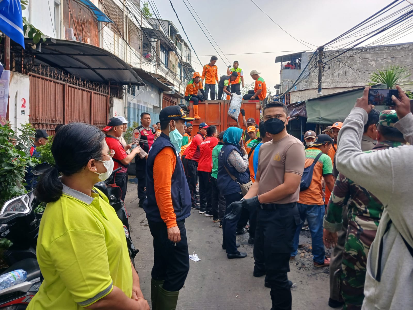 Sebuah aksi nyata yang memperlihatkan kepedulian dan kebersamaan untuk melaksanakan kegiatan kerja bakti di lokasi pasca kebakaran.