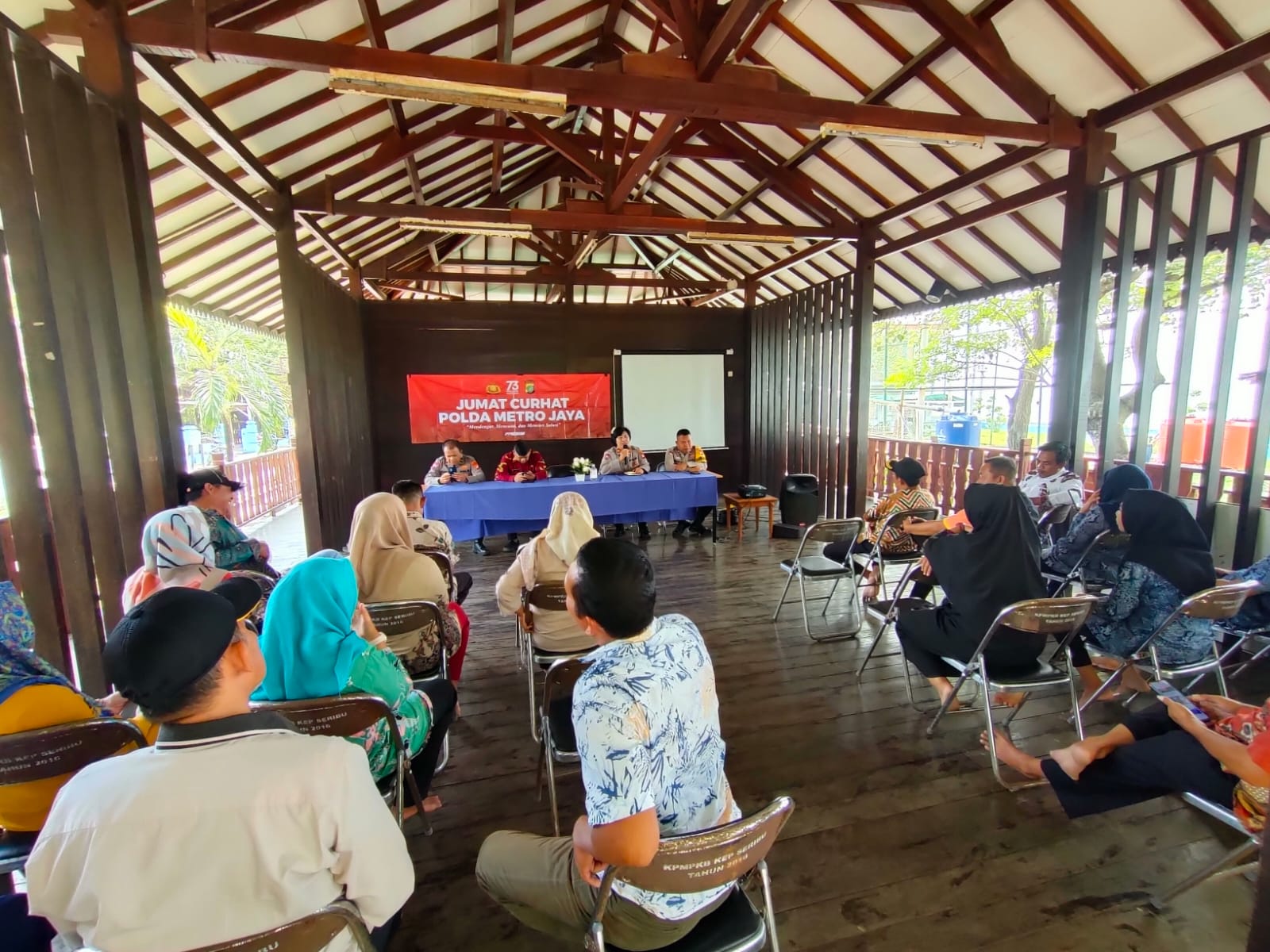 KS, JAKARTA – Iptu Ni Made Sudani, seorang Srikandi Polres Kepulauan Seribu yang menjabat sebagai KBO Sat Binmas, bersama dengan Kanit Binmas, Bhabinkamtibmas, dan Kasi Kesra Kelurahan Pulau Untung Jawa, mengadakan kegiatan “Jumat Curhat” yang bertujuan untuk mendialogkan, mendengarkan, mencatat, dan mencari solusi terhadap permasalahan kamtibmas di Pulau Untung Jawa. Kegiatan ini berlangsung pada Jumat (09/06/2023) di RPTRA Amiterdam Pulau Untung Jawa, Kepulauan Seribu Selatan.