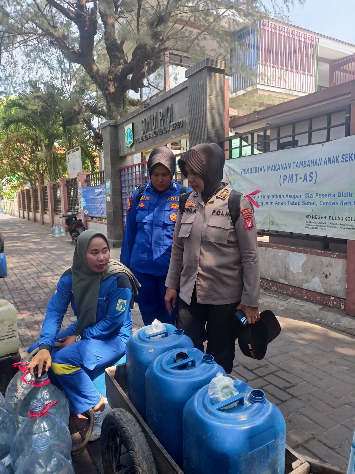 Mustofa yang kediamanya merupakan juga tempat penyulingan air bersih sempat mengutarakan keluh kesahnya kepada Srikandi Polres Kepulauan Seribu.