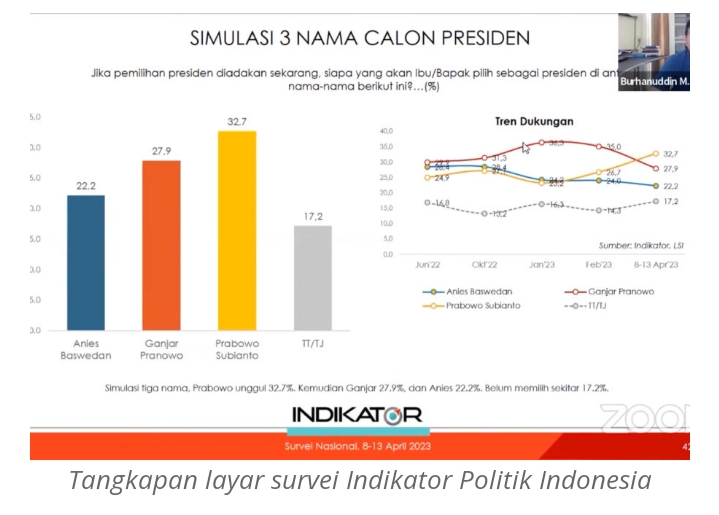 Survei Indikator: Elektabilitas Prabowo Jauh Unggul 51,2% versus Anies 33,5