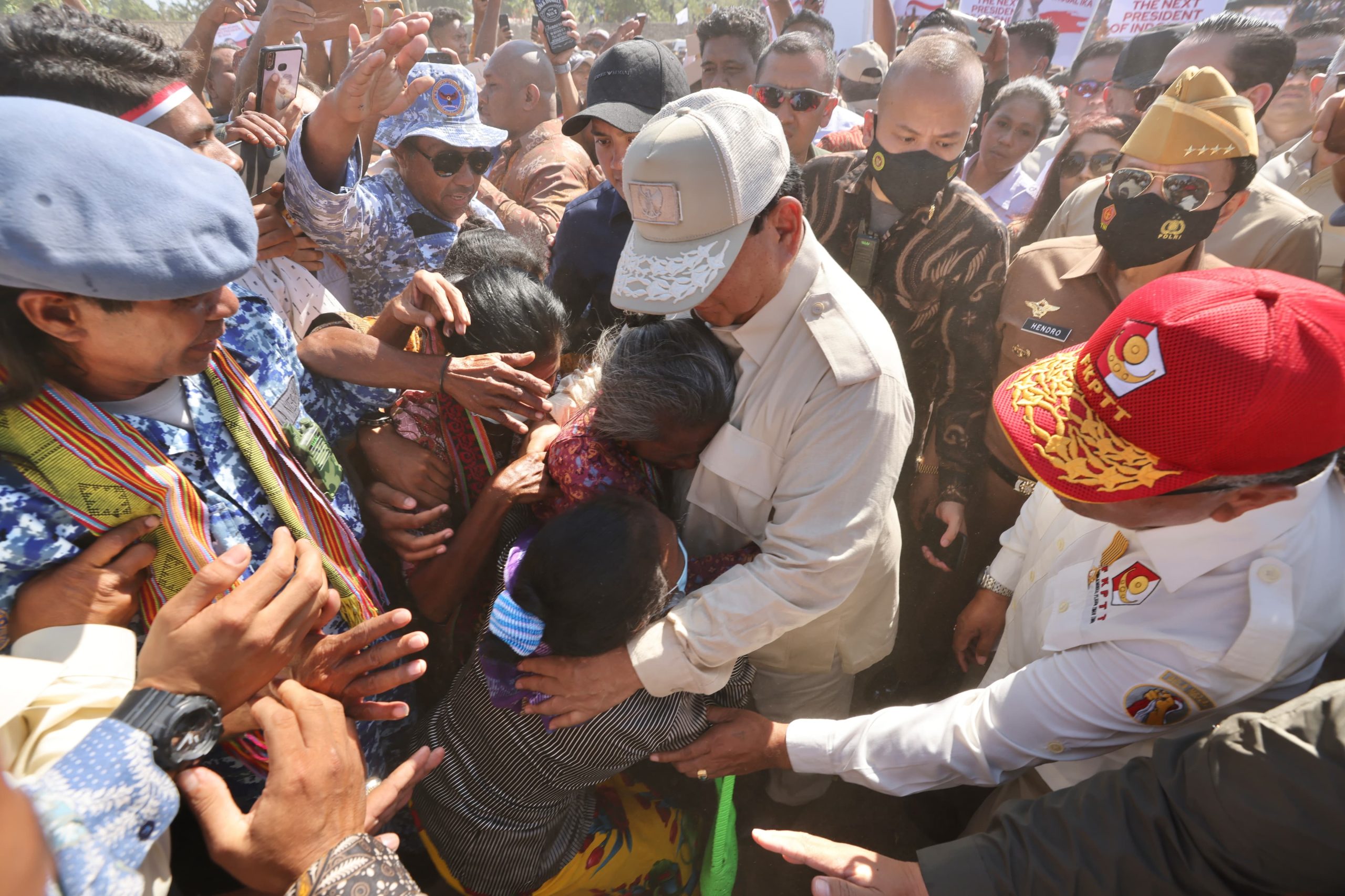 Prabowo pun menghampiri satu-persatu warga Atambua dan menyapa serta menyalami mereka.