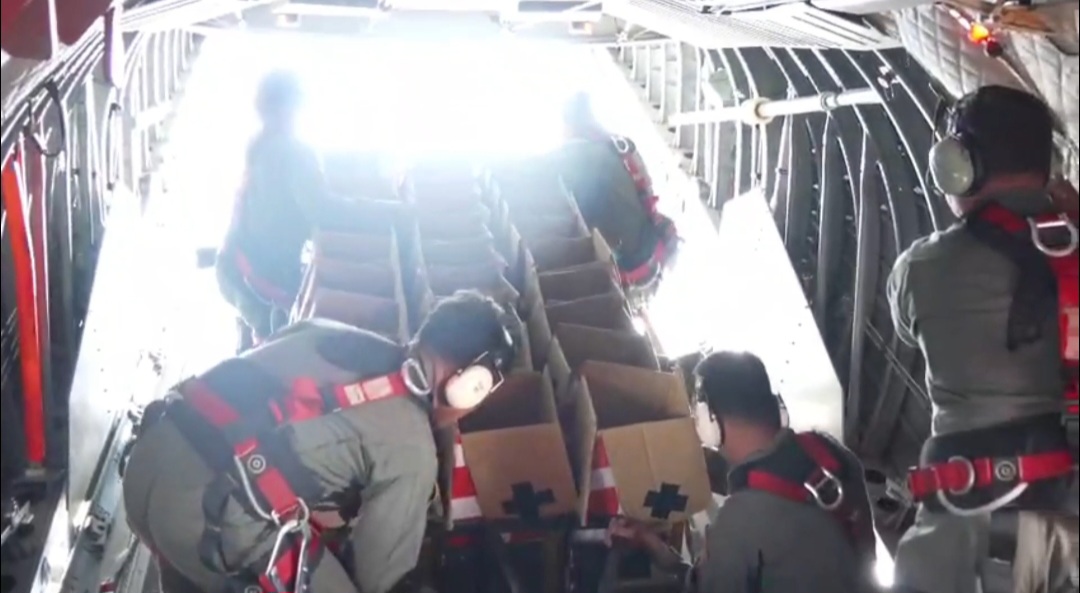 TNI Salurkan Logistik ke Wilayah Terisolasi dengan Metode Airdrop