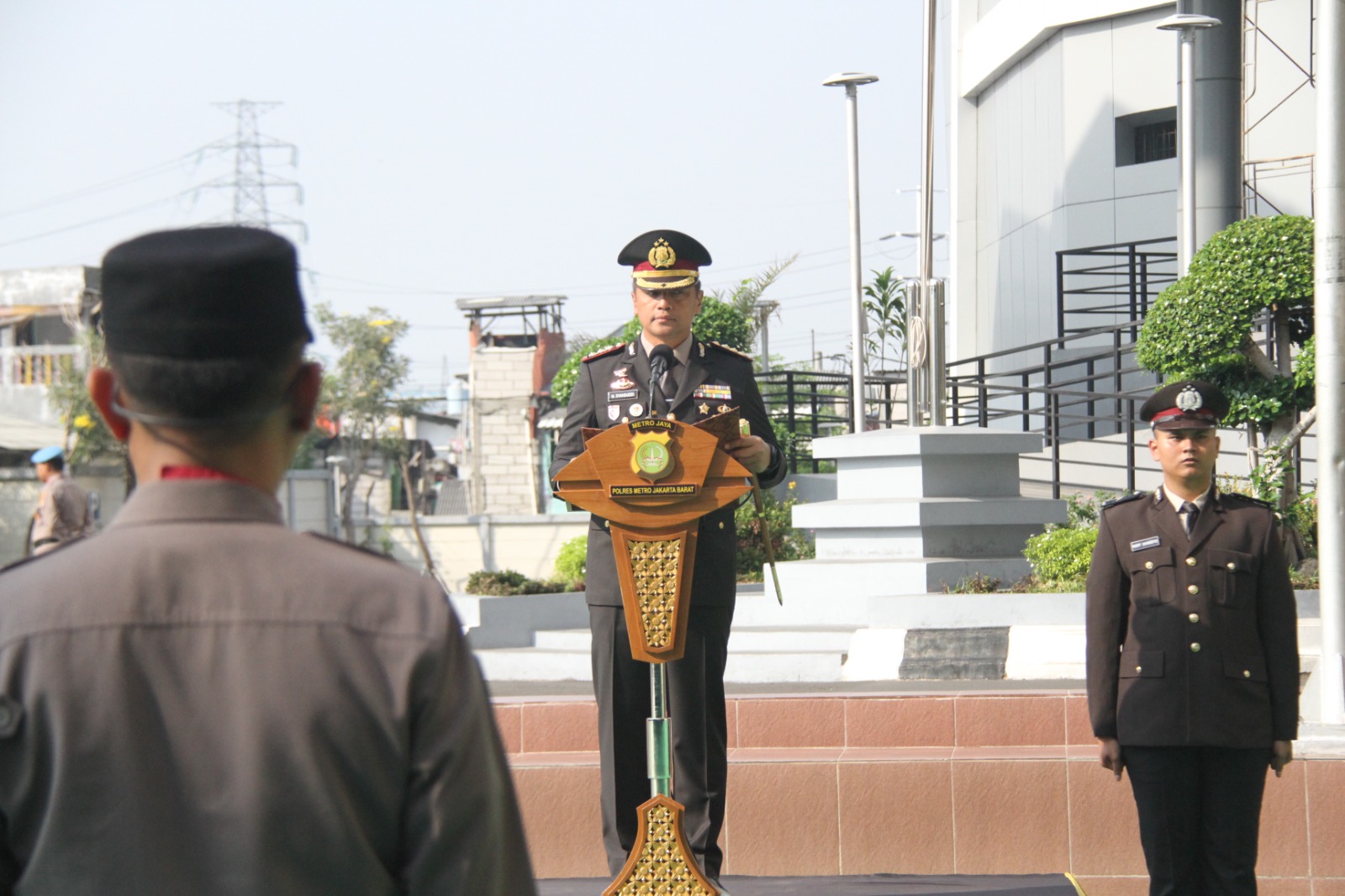 Upacara yang berlangsung khidmat di halaman Polres Metro Jakarta Barat ini dipimpin langsung oleh Kapolres Metro Jakarta Barat, Kombes Pol M. Syahduddi, yang bertindak sebagai inspektur upacara.