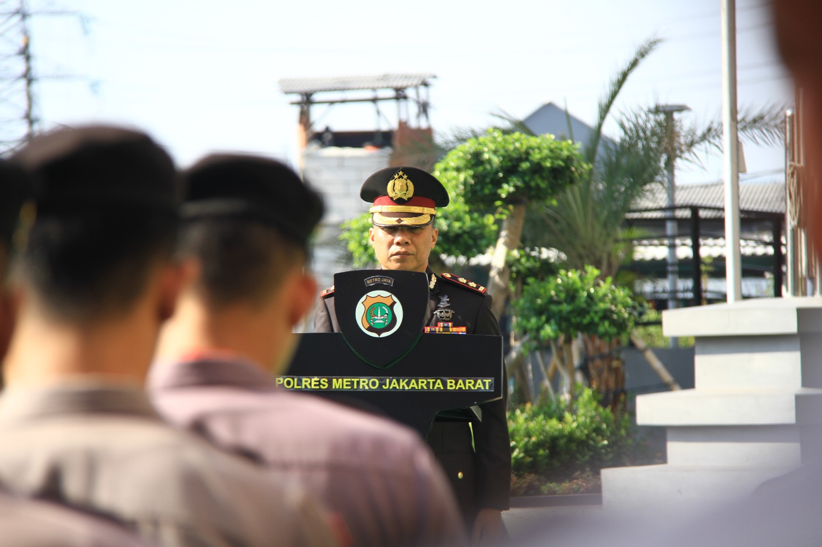 KS, JAKARTA – Dalam rangka memperingati Hari Bela Negara yang ke-75, Wakapolres Metro Jakarta Barat, AKBP Sarly Sollu, memimpin dengan penuh semangat upacara di lapangan hijau Polres Metro Jakarta Barat, Selasa, (19/12/2023).
