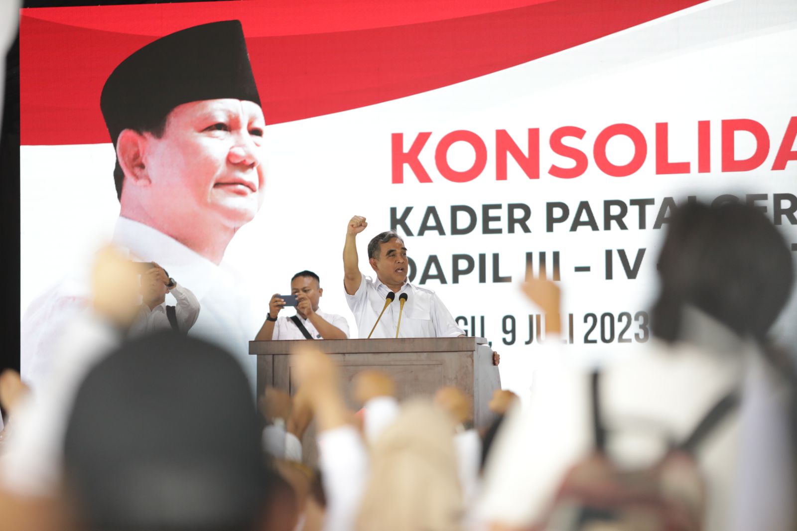 “Sangat penting bagi kader-kader Gerindra untuk sadar dan memahami hal ini. Marilah kita selalu menghindari perpecahan, marilah kita selalu menghindari kebencian. Jangan membenci orang lain, jangan curiga sama orang lain. Waspada harus, tapi jangan menebarkan kebencian,” imbuhnya.