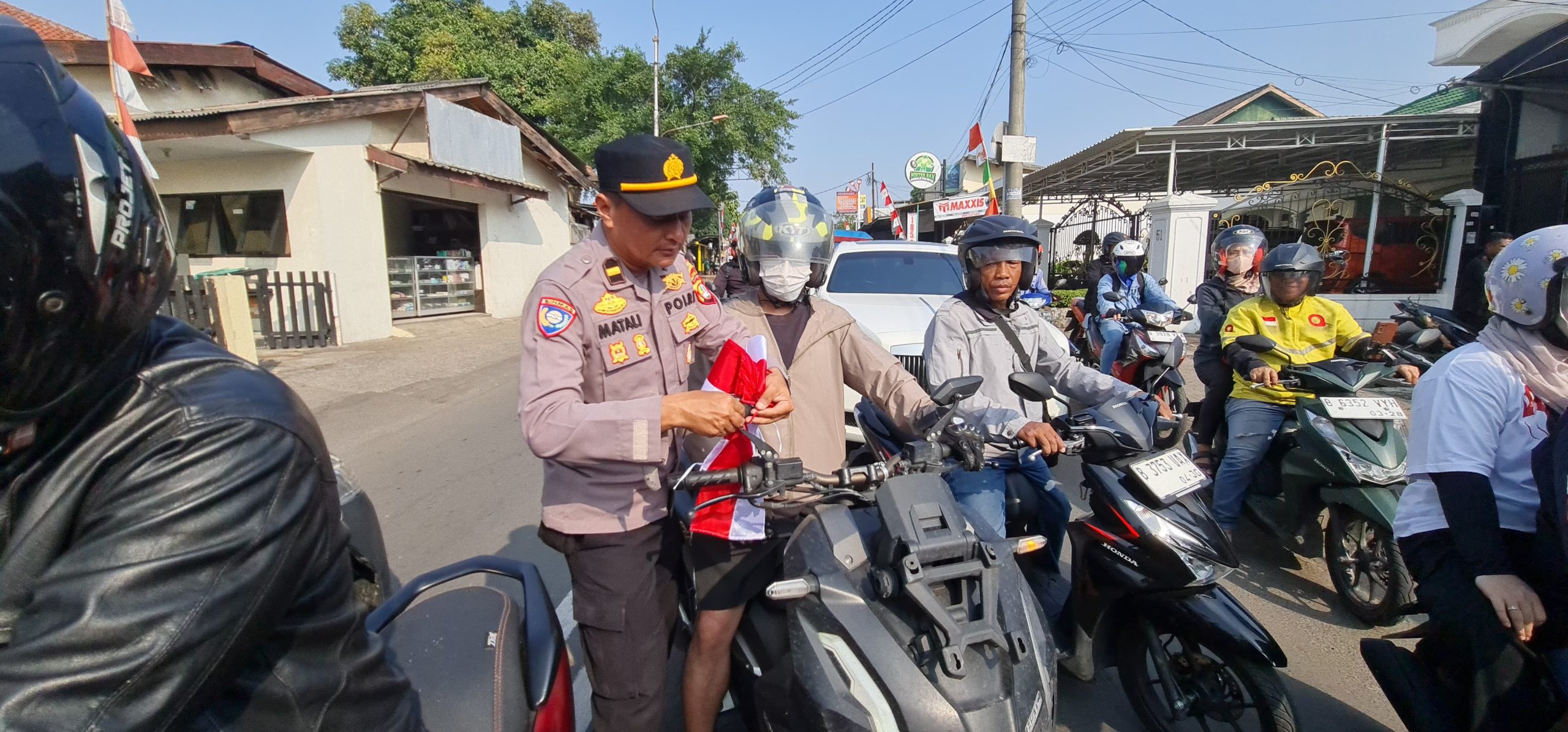 Wujud Cinta Tanah Air, Polsek Kembangan Sebar Bendera ke Ratusan Pengendara