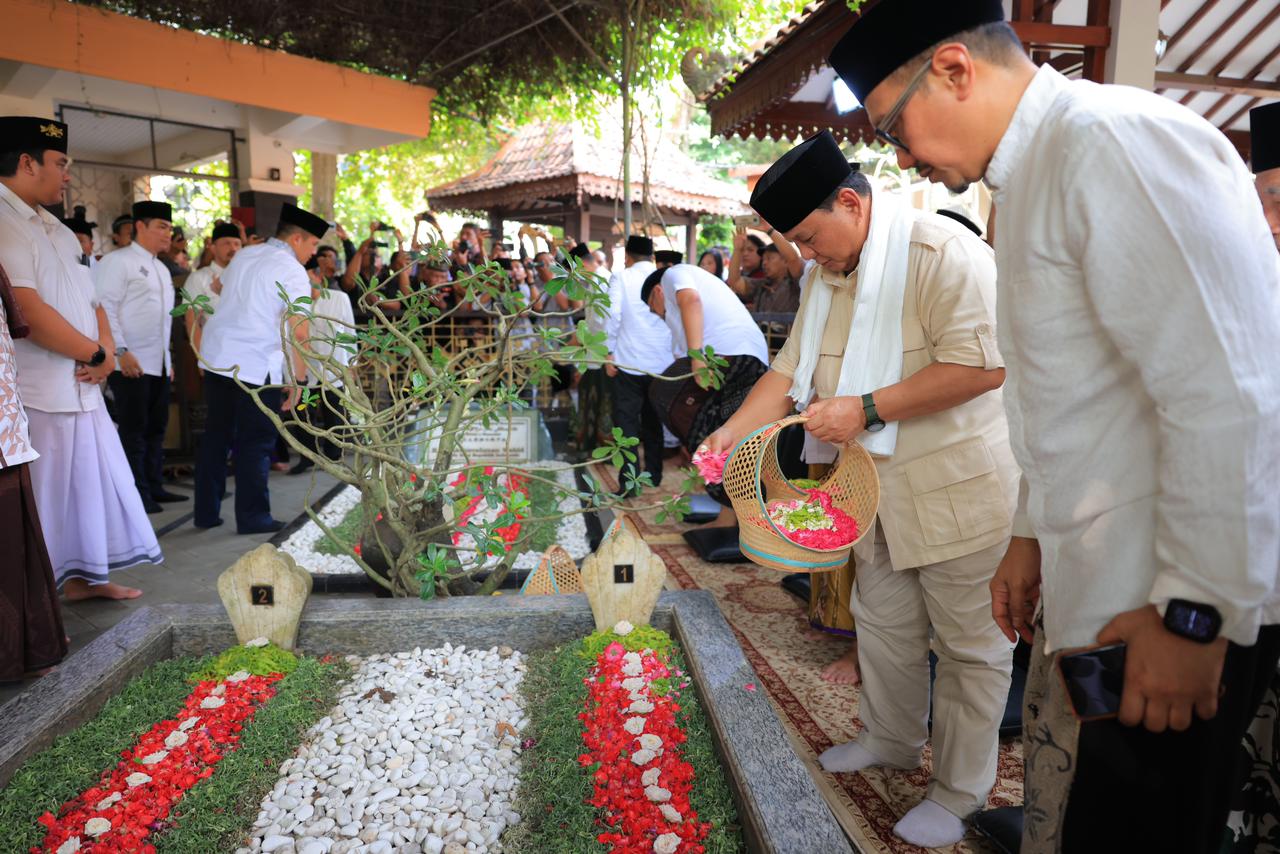 Setibanya di pondok, Prabowo bersama para rombongan langsung menuju area makam. Selama 30 menit mereka membacakan tahlil dan diakhiri pembacaan doa secara khusyuk.